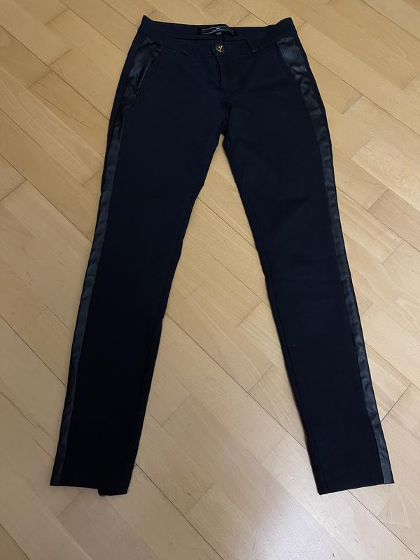 Брюки с лампасами 26 размера. Бренд Elizabetta Franchi. Пояс 35,5 см, ПОС 45 см, длина 91 см, посадка низкая ( 32/ 20). Ширина сверху 23, снизу 12 см. Тянутся за счет эластана. Дефектов нет.