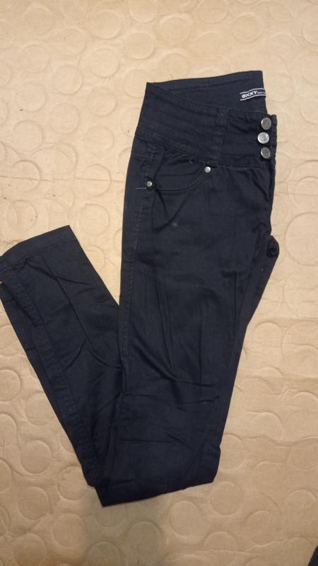 Штани брюки Oxxy denim collection . Размер 38. По талии 38 см. По бедра 50 см. Высота посадки: спереди 21 см, сзади 27 см. Боковой шов 102 см. Шаговый шов 78 см. Ширина внизу 14,5 см. 97% коттон, 3% еластан. Эффект: заутюженная сборка сзади, фото 5.