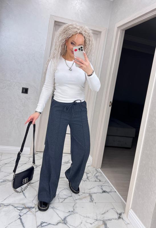 Кашемировые брюки Палаццо Рабочие карманы, талия на резинке. Материал: кашемир, внутренняя сторона утеплена микрофлисом. Цвет: графит, черный Размеры: 42-44, 46-48, 50-52
