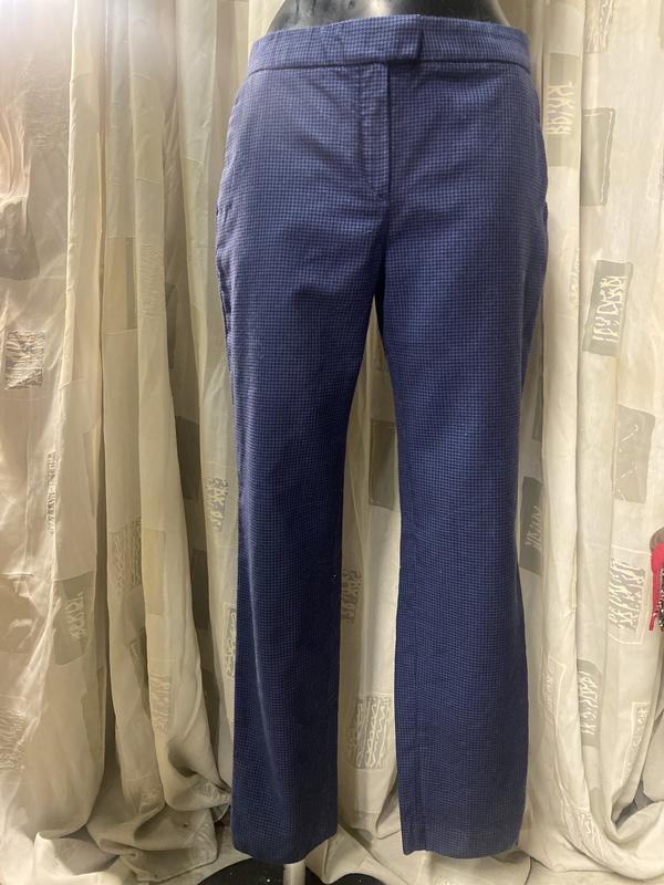 Стильные брюки от Massimo Dutti. «Гусиная лапка» сине-черного цвета. Склад:вовна-100/. Размер по набору-38. Замеры: длина по внешнему боковому шву-94 см, по внутреннему-70 см, ПОТ-38 см, ПОБ-46 см, полуширина штанины по низу-16 см.