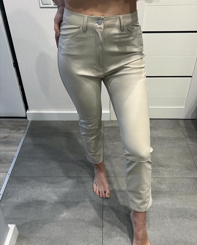 Нові, з бірками. Екошкіра. Розмір 36: ОТ 71 см, ОС 94 см, довжина 96 см, довжина штанини 67 см.