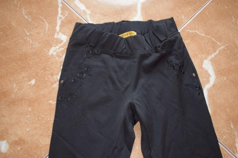 Красиві штани Оригінально пошито. Тканина стрейч Колір чорний виробник Турція наяву набагато краще ніж на фото окружність талії: 62/80 довжина зовнішнього шва 102 довжина внутрішнього шва:80