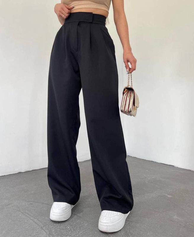 Брюки✨ Модель: 016 mia Размер: 42-44; 44-46 Ткань: Турецкая Костюмка Цвета: Черный, серый, шоколад, св. беж. 📌Замеры: Длина брюк: 103-105см В талии регулируются☝🏻 Брючки клеш, пояс на липучке+молния.