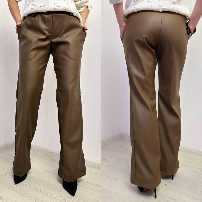 🥰 Брюки 🥰 Модель 027 Розміри: 42-44,46-48,50-52 Тканина: еко - кожа на флісі Кольори: чорний , коричневий 🔥Ціна: 620 грн 🔥кабло
