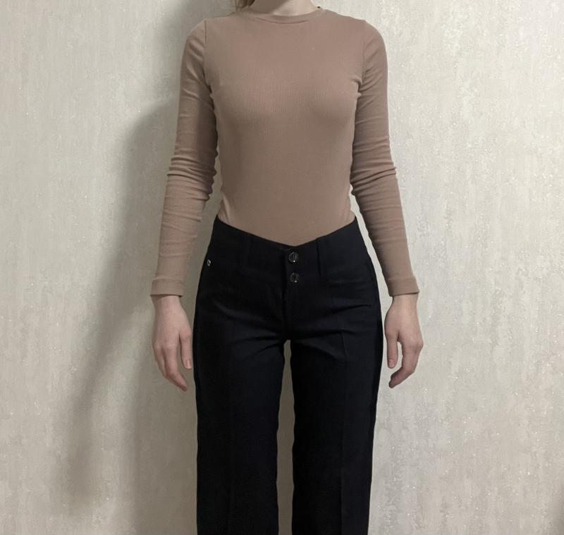 Прямые брюки на средней посадке, темно синего цвета. В идеальном состоянии. Очень красиво подчеркивают фигуру. Подойдет на S и М.
