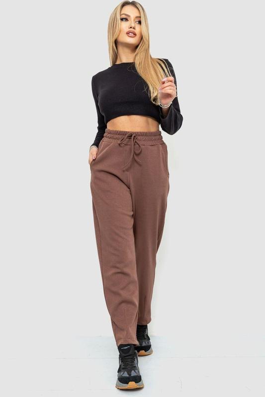 Штани жіночі в рубчик, колір коричневий, 115r0430-1
