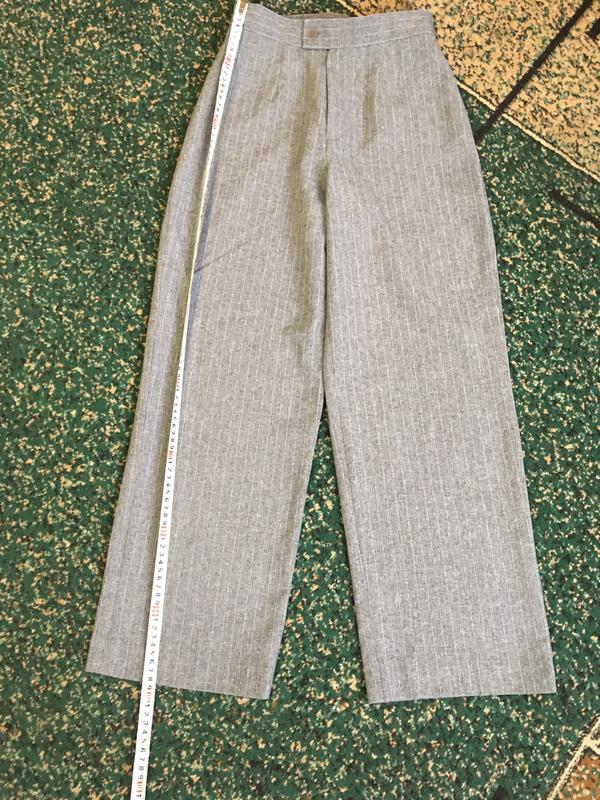 Состояние новых, шикарные, красивого серого цвета в полоску.ПОТ 32 см не тянется, длина 100 см, ширина штанины внизу 24 см *2, ПОБ 48 см, из зада есть 2 нашитых рабочих карманов