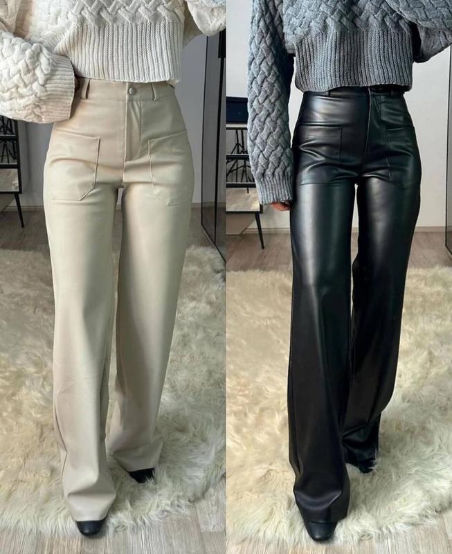✨НОВИНКА✨ Штани🔥 Модель: 068 Размеры: 42-44; 46-48 Тканина: кожа матова. Цвет: черный, св. беж.