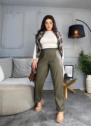 Брюки модель #2100 Талия на резинке посередине декоративный шов ткань эко-кожа на трикотаже цвет черный, карандашка и коричневый 42-44(1),46-48(2) 690 грн 50-52(3),54-56(4),58-60(5) 750 грн На модели также наша невероятная рубашка #2101 и #2104 лонгслив 42-44 Длина 110 см Талия на резинке в нерастянутом виде 60 см ПОстегон 52 см 46-48 Длина 110 см Талия на резинке в нерастянутом виде 65 см ПОстегон 56 см 50-52 Длина 110 см Талия на резинке в нерастянутом виде 70 см ПОстегон 60 см 54-56 Длина 110 см Талия на резинке в нерастянутом виде 75 см ПОстегон 65 см 58-60 Длина 112 см Талия на резинке в нерастянутом виде 85 см ПОстегон 68 см