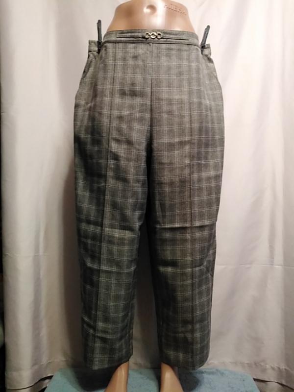 Костюмная ткань средней плотности. Сзади талия на резинке. Посадка завишена . ПОБ - 56см