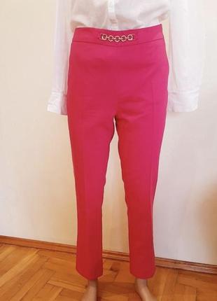 Брюки новые розового цвета( фуксия) могут быть как классические так и на каждый день.Сбоку карманы еще зашиты, пот 39 побеги 48, пройма 27/ 36, длина 97/74. Котон 53%