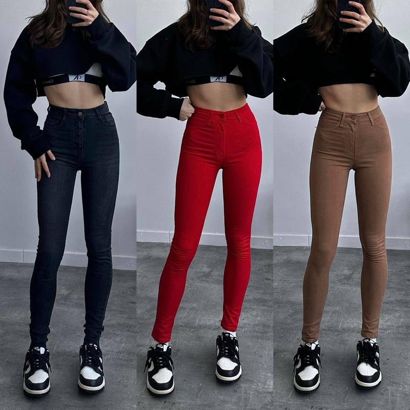 🔥Брючки новая цена 495грн 🐈⬛Ткань стрейчевая, идеально садятся по фигуре, сзади работая карманы ➡️Мод. 1243 ➡️Размеры: 42/44, 44/46 ➡️Ткань: джинс-бенгалин ➡️Цвет: черный, красный, мокко ➡️Длина изделия 97см Первый размер ОС до 92см Второй размер ОС до 99см ‼️Лучшие цены, новинки. код30-1855(ТБе)