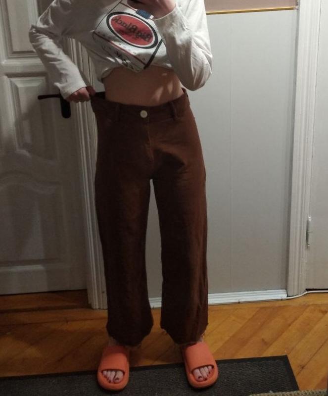 Одягала буквально пару раз,не сильно звикша до такого фасону. Замеры Длина внешнего шва:97 Длина внутреннего шва:67 Полуобхват талии:37.5 Полуобхват бедер:48