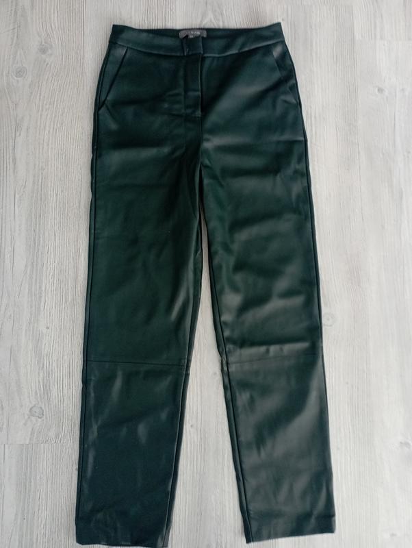 Штани в ідеальному стані,штучна шкіра ,пояс 37см , бедра 48см, довжина 103см, кроковий шов 71см., колір темно зелений.