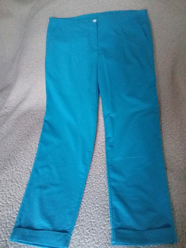голубые, легесненькие, 48, коттон 43%, вискоза52%, летние легеские, пояс 42, бедра 49, длина 86, в ходу 63 выше косточек.