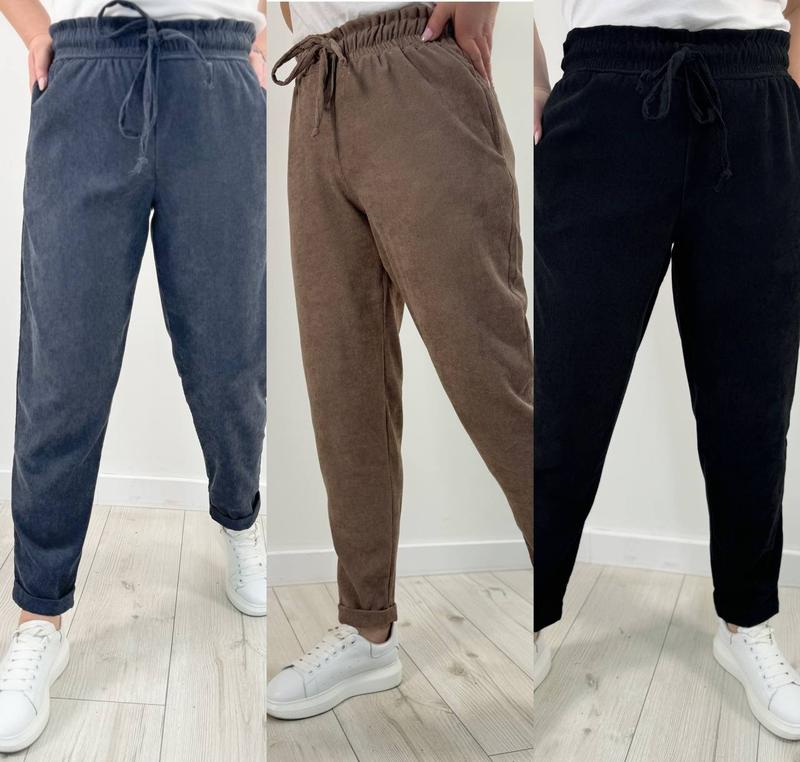 Штани Тканина: вельвет Цвет: черный, графитовый, мокко Размеры: 50, 52, 54, 56, 58 Брюки талия на резинке и канате, с карманами. По низу подгиб. 📩 571