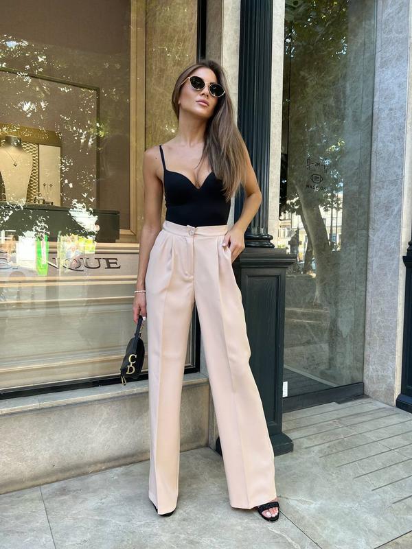 Брюки Палаццо Модель: # 723 Тканина: креп костюмний Размеры: S. M. L Цвет: черный, бежевый, серый, белый