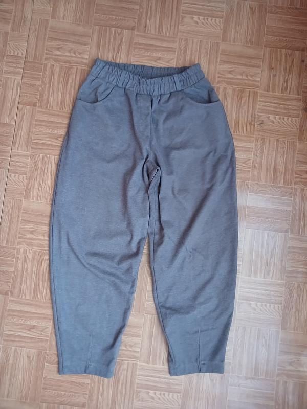Очень хорошая моделька брюк, удобная посадка, на резинке,пояс 34см, длина 95см,беддра 56см.На размер 46-48