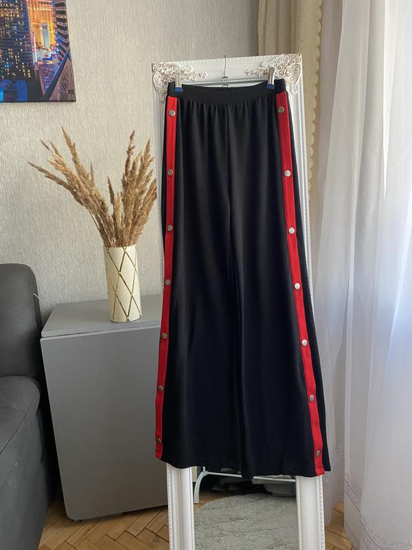 Штани палаццо 💔 Дуже класні, на резинці, суперзручні, кнопки розстібаються по всій довжині , розмір вказано дитячий, але підійдуть на xs-m, є трохи потертості на кнопках, решта в нормі, заміри по запиту надам 😉