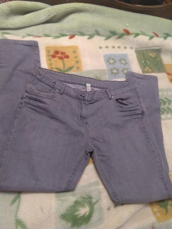 Дуже гарна фірмова орегінальна річь дуже гарно виглядає, розмір указаний 18/46, тканина стречь добре тягнеться, дуже гарний сірий колір, длина -105см, полу обхват талії -50см, полу обхват стегон -65см, посадка спереду -25см, посадка заду -37см, тканина стречь добре тягнеться, не разу не були одягнені.