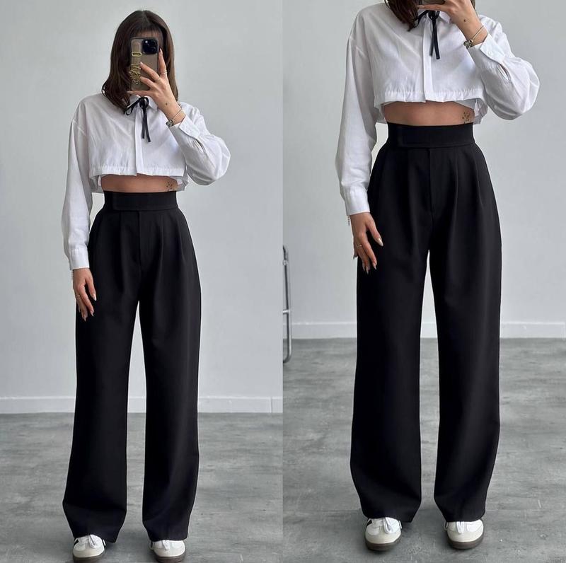 Модель: 016 Розмір: 42-44; 44-46 Тканина: Турецька Костюмка Кольори: Рожевий, Зелений, Чорний, Сірий, Шоколад, Св. беж. 📌Заміри: Довжина брюк: 103-105см В талії регулюються Брючки кльош, пояс на липучці+змійка.