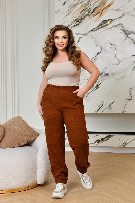 Брюки слоучи Ткань микровильвет Цвет бежевый.терракотовый Размер 46-48 50-52 54-56 Высокая посадка На коленях рабочие карманы Талия на резинке Модель очень удобная и классная зп