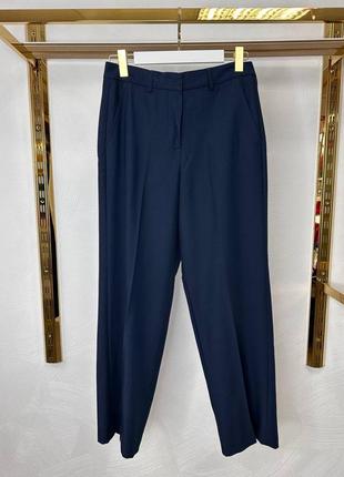 Жіночі брюки, темно-синього кольору • Зручна висока посадка • На поясі петлі для ременя Розмір 30/30