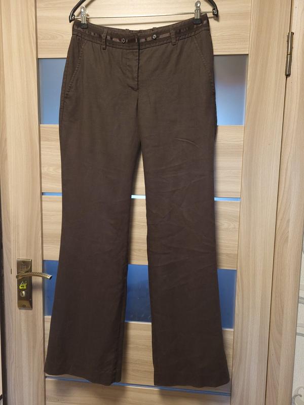 Брюки в идеальном состоянии. Размер указан S. Ткань 100% лен. Цвет черный шоколад. ПОТ 39см ПОБ 50см Длина 102/82см Ширина внизу полуобхват 26см на уровне колена 23см На уровне паха 31см Посадка 22/36см