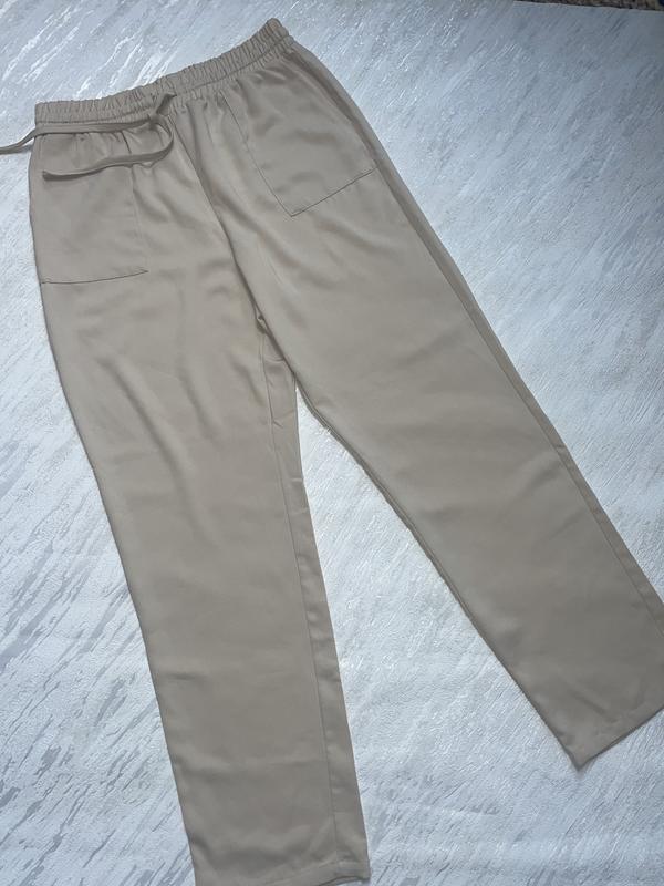 Брюки бежевые,ольного кроя Пояс на резинке, накладные карманы Легкая приятная ткань Р.Л