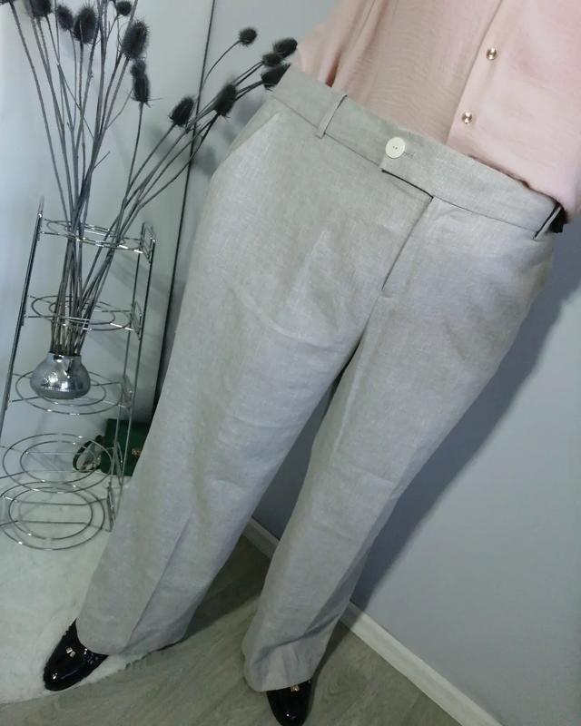 🌾Льняные брючки Р. 22 R Пояс 114 Бедра 130 Длина 110 Посадка 40 Шаг 78 Ширина штанины внизу 30 🔖Цена грн