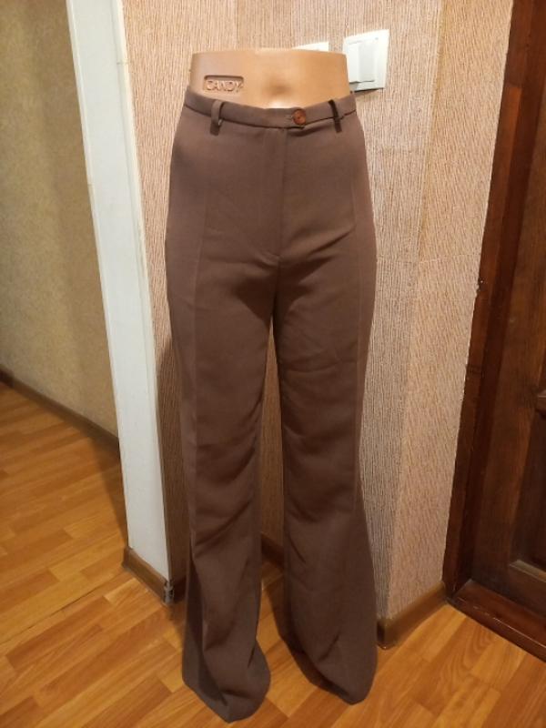 брюки широкие, клеш, 38й размер, пот.34см., поб.47-48см., посадка 28/35см., ширина штанки по низу 31(62)см., длина 107см., не тянутся. В носке не были, но без бирки.