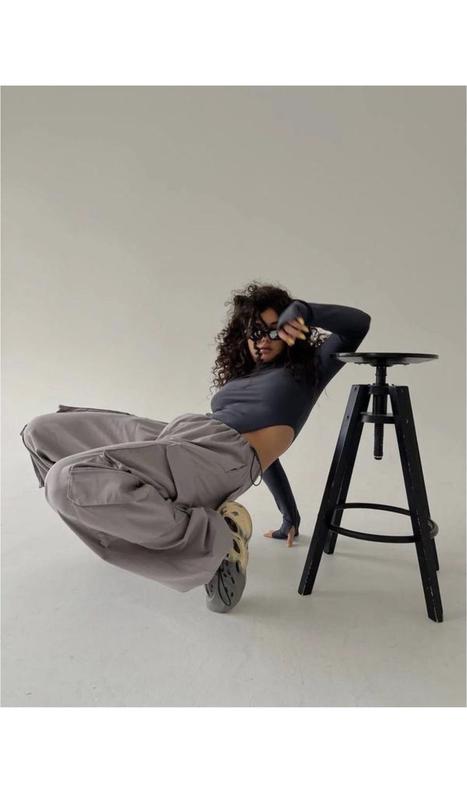 Замовляла на шафі. Нажаль не підійшов розмір. Орієнтовно на S, можна спробувати на XS, будуть як оверсайз. Тканина щільна. Є резинки що затягують на талії і внизу на штанах.