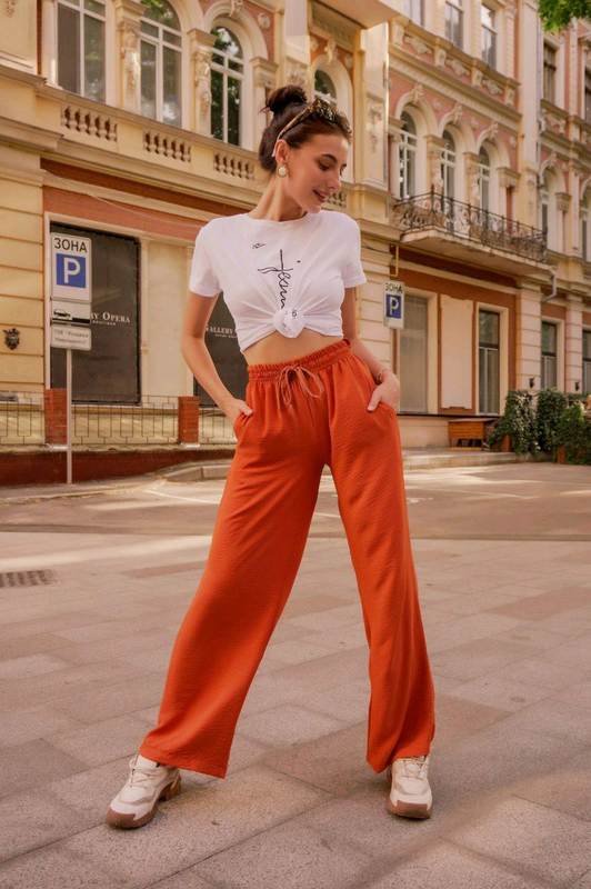Виробник: Інший виробник Кілька примірників у наявності # Штани 🍏Цена: 450 грн Розміри: 42-44, 46-48, 50-52 Артикул: 526/0373 Матеріал: полегшений льон жатка Колір: моко, теракот, салатовий, рожевий, хакі. Зріст моделі 173 см Штани з високою посадкою, талія на гумці та шнурку. У бічних швах функціональні кишені. Замовити 💌