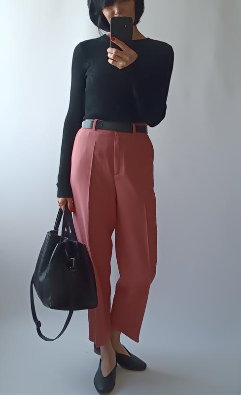 Высокая посадка но можно носить и как среднюю посадку. Широкие,из шикарной костюмной ткани.Надеты на рост _170 см.