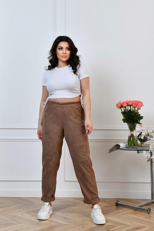 Брюки слоучи Модель 1251 Ткань микровильвет Цвет бежевый.терракотовый Размер 46-48 50-52 54-56 Высокая посадка На коленях рабочие карманы Талия на резинке Модель очень удобная и классная Замеры брюк 1251 Размер 46-48 Об.т без растяжения резинки 76 Об.б 110 Дл брюк по боковому шву 108 Дл брюк по внутреннему шву 77 Высота посадки 37 Размер 50-52 Об т 82 Об.б 114 Дл брюк по боковому шву 110 Дл брюк по внутреннему шву 78 Высота посадки 39 Размер 54-56 Об.т 88 Об.б 118 Дл брюк по боковому шву 111 Дл.брюк по внутреннему шву 79 Высота посадки 41 Ткань не тянется