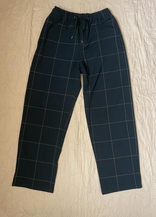 Брюки, темно синего цвета, в талии на резинке. Состояние: идеальный Имеют спереди 2 кармана Да позади 2 кармана обманки Размер: по набору Xs но будет на S, да на маленькую М Замеры: Пол обхват талии 31, длина 91, полуобхват бедер 49. На не высокий рост.