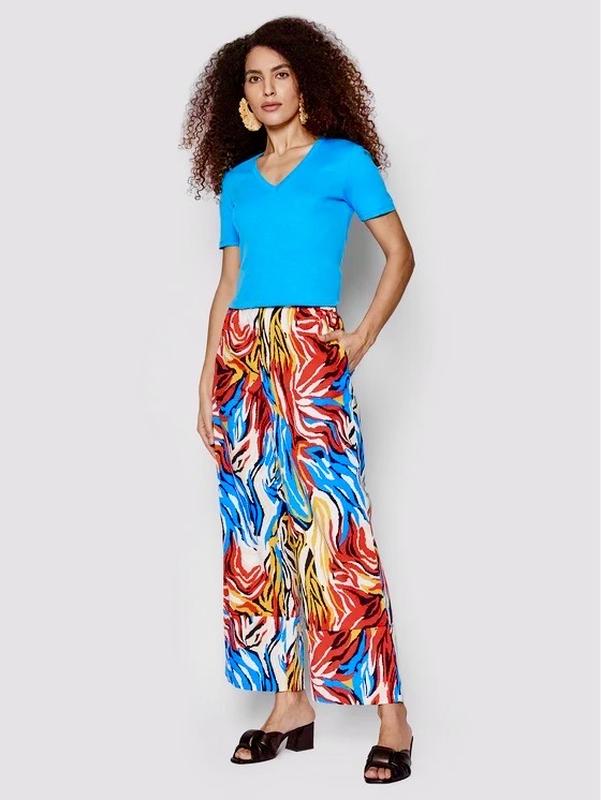 Супер оригинальные, яркие брюки-кюлоты от United Colors of Benetton с отличным составом (котон, лиоцелл эластан), новые, бирка на месте, нажаль так и не пришлось надеть за счет кроя можно носить на разный рост – тем кто не высокий как брюки, тем кто повыше в виде кюлоты размер по набору М, но болеемерит на L-XL, цвет как на 5-7 фото ПОТ 41 (тянется до 48) ширина штанини 35 посадка спереди 33