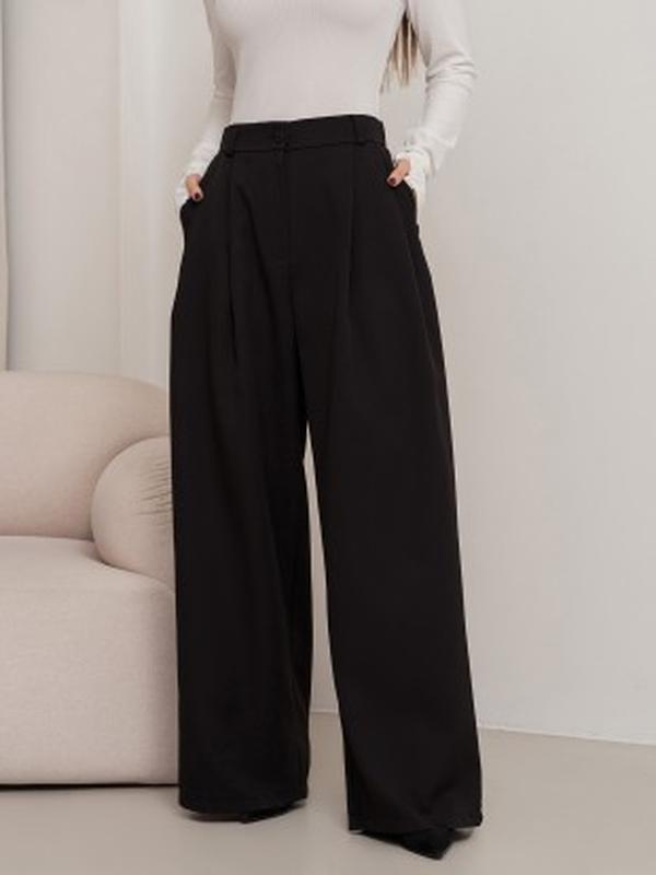 Материал: КостюмкаАрт: 14442_ Состав: 59%, полиэстер, 21%, эластан, 20%, хлопок Молочные черные брюки палаццо прямого широкого кроя с защипами в районе талии, выполненные из костюмки. Модель с карманами и высокой посадкой оснащена поясной задней резинкой. Модель на пуговице и молнии.ЗАМЕРЫ ИСПОЛЬЗОВА Мы измеряем готовые изделия! Чтобы точно определить размер, сделайте замеры одежды сантиметровой лентой и сравните с таблицей. Полуобхват S M L XL Талия 32 34 36 38 Стегна 56 58 60 62 Длина изделия: 104, длина по внутреннему шву - 75 Ткань: низкая эластичность