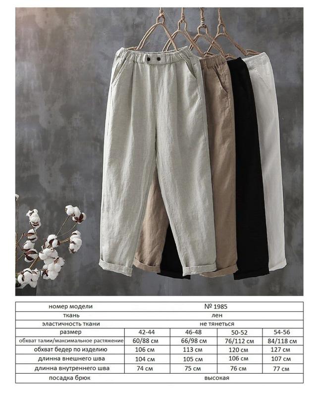 No1985 штани слоучи размер: 42-44,46-48,50-52,54-56 ткань: турецкий лен, сзади накладные карманы, все карманы рабочие цвет: белый, кофе с молоком, светлый беж, черный