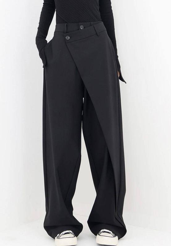 Ультрамодные брюки на запах. Модель 3286. Размеры: 42-44, 46-48, 50-52 Размер: 54-56 Цена 1150грн Тканина: костюмка Цвет: черный, серый Прямые брюки с эффектным асимметричным запахом спереди из костюмной ткани. Сочетаются с рубашками, футболками, свитшотами и худи. Брюки средней посадки, с боковыми карманами. Застежка брюк на молнию и пуговицу, пояс сзади на широкой резинке, для идеальной посадки.