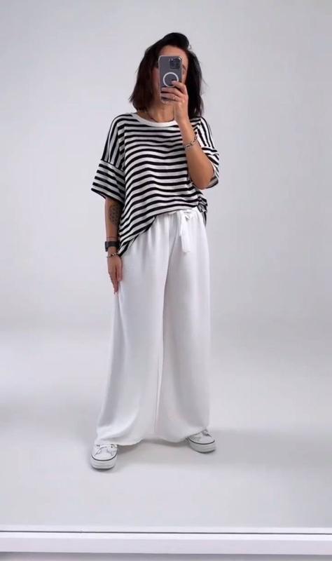 Штани Мод RC- 74 Разміри: 42-48, 50-56 Колір : білий, чорний, беж, сірий, зелений Тканина : американський креп жатка Ціна : 980грн Неймовірно зручні, приємні до тіла , універсальні - на будь-який випадок. Ці штани стануть незамінною річчю цього сезону