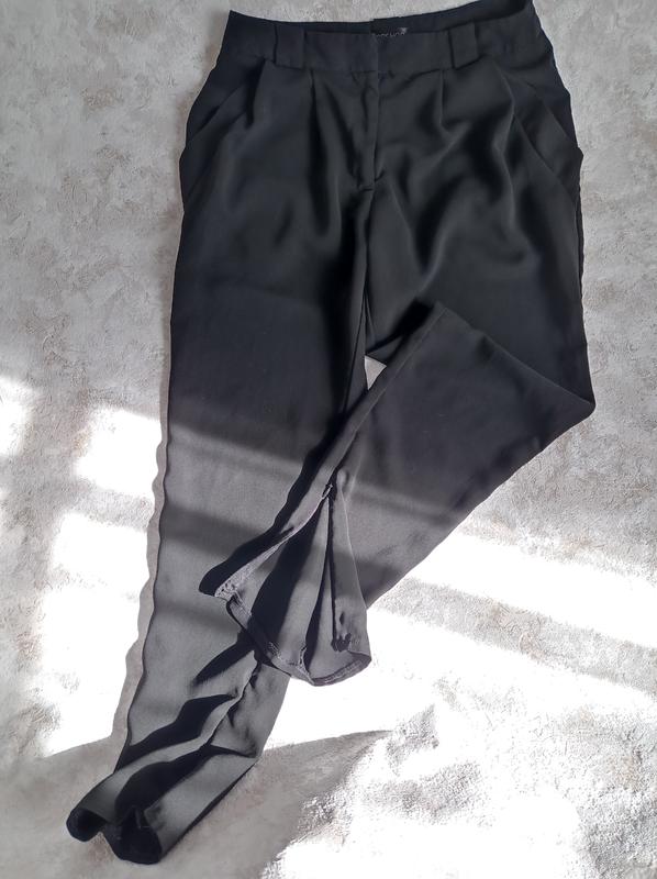 брюки легенькі мають замочки знизу клешні з середини.Висока посадка.