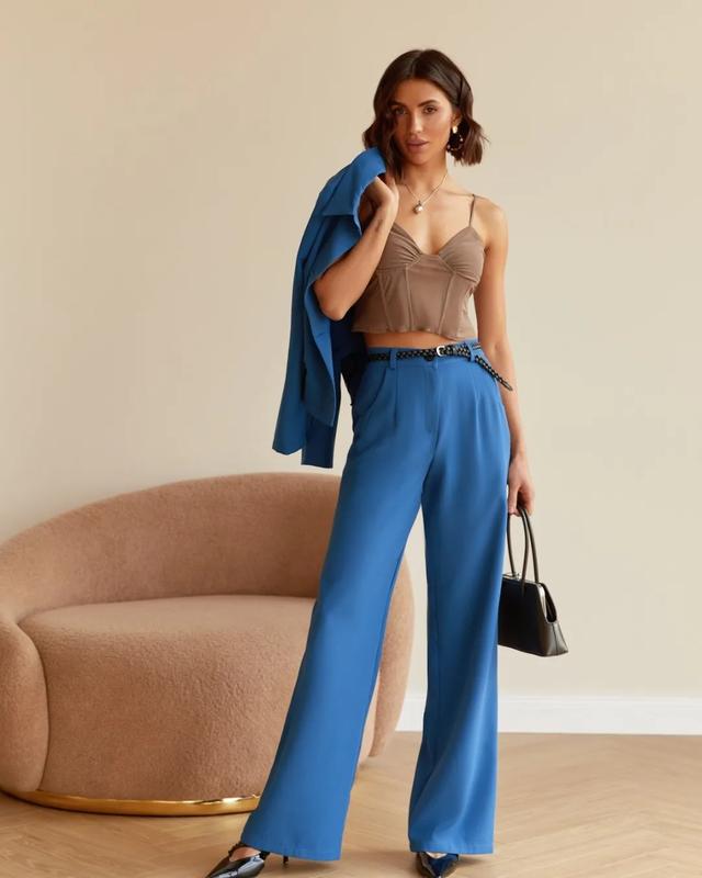 🔥Штани прямого крою. Талія доповнена шльовками. Для комфорту в носці передбачені кишені. Застібаються на блискавку та ґудзики. Пояс у комплект не входить. ✔Розмір:44,46,48,50,52 ▪️довжина зовнішнього шва -110см ▪️довжина внутрішнього шва -81см 🧵Склад: 65% віскоза, 30% поліестер, 5% еластан 🎨Колір: бежевий,синій 🧵Матеріал: Костюмна тканина 💳Ціна:1200грн Арт42888 ‼️збір замовлення 1-3 дні ‼️