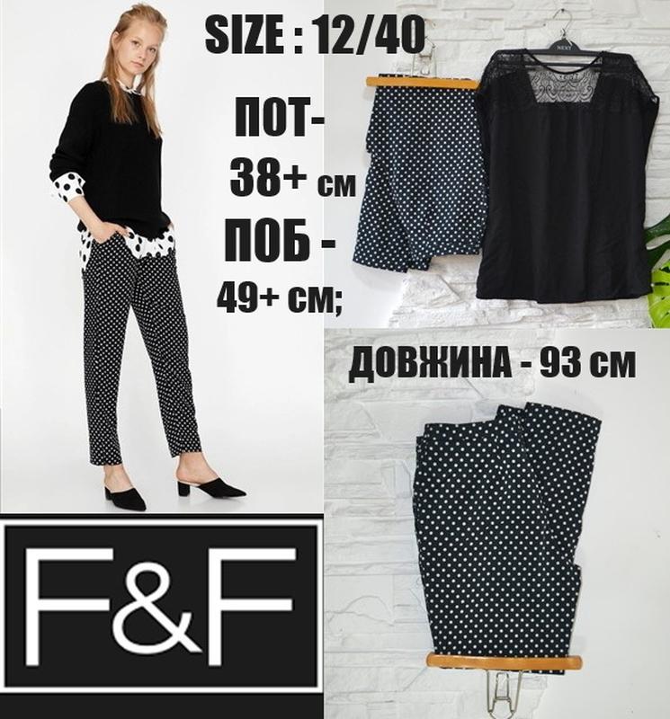 #штани #брюки #штани_в_горошок #класичніштани #чіноси #бавовна Штани в горошок від відомого британського бренду F&F не втрачають своєї актуальності до цього дня❗ Горошок додасть родзинку до будь-якого жіночого образу❗ 💄 F&F SIZE: 12/40/L Чудовий склад тканини: 97 % - COTTON i 3 % - elastan. Частка еластану у матеріалі забезпечує приємне відчуття комфорту❗Горошок на штанах виконує дві функції: привертає увагу до приголомшливих жіночих ніг і ... служить відволікаючим елементом від повноти. Доповнити ансамбль у цьому випадку зуміють oднотонні кофти, футболки, топи з шифону, джинсові сорочки та подовжені туніки. Штани з принтом горошок є класикою повсякденної моди, їх належать до напрямку street fashion. ПАРАМЕТРИ виробу, 👖 у спокійному лежачому положенні: П0Т - 38-40 см, П0Б - 49+ см, довжина виробу - 93 см; ширина штанин унизу - 15 см*2; посадка - 27 / 37 см. ТЯГНУТЬСЯ!
