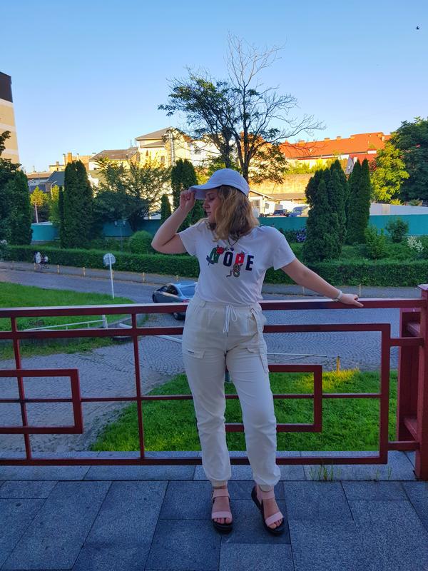 Брюки-джоггеры молочного цвета на резинке и шнуровке на талии. Стиль, хит сезона весна-лето 2024😍 Размер - M/L, подойдет в качестве оверсайса на уверенную S. Стан - идеальный 🔥 Одела лишь несколько раз за сезон, а дальше похудела и уже не поднимается размер.
