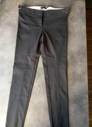 Брюки Massimo Dutti, оригинал, темно-серого цвета, узкие. Состояние идеальное. Размер европейский 38, состав: 48% хлопок, 45% полиамид, 7% эластан. На поясе по бокам декоративные элементы - кожаные ремешки, пряжки цвета золота, по низу брюк потайные молнии. Замеры: ПОТ 41 см, ПОБ 42 см, посадка средняя 20/33 см, длина по внешнему/внутреннему шву 95/77 см, ширина по низу брючины 1/2 - 13 см. Ткань хорошо тянется.
