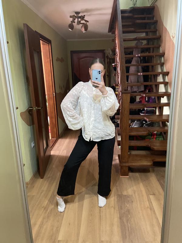 Брюки Замеры: Талия: 32 см, тянется до 40 см Бедра: 48 см, тягнуться до 50 см Длина: 98 см Ширина штанины снизу: 22 см Крок: 70 см Стан - идеальный
