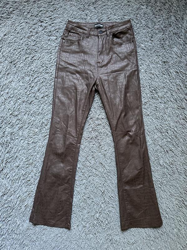 Женские брюки коричневого цвета в змеиный принт, размер 34 но лучше садится на С-36, на небольшой рост.