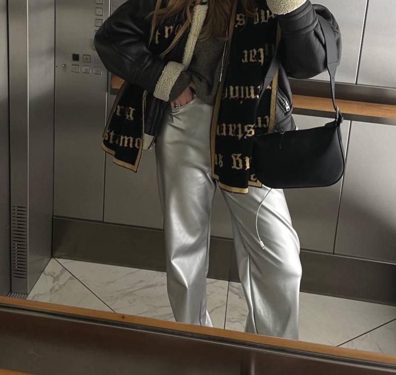 Брюки из эко-кожи серебряного цвета от украинского бренда Diadia