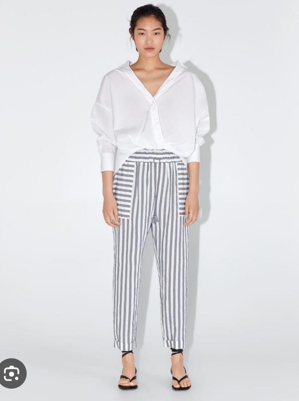 брюки бренда Zara размерS ПОТ 31 см ПОБ 53 см длина 97 см ткань поликстер пояс на резинке присутствует шнурочек карманы